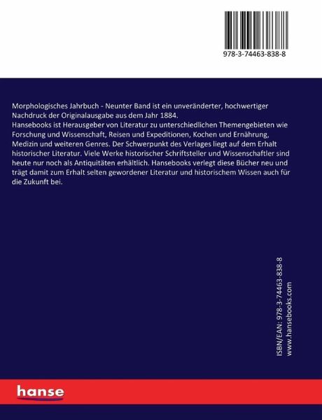 Morphologisches Jahrbuch - Neunter Band ist ein unveränderter, hochwertiger Nachdruck der Originalausgabe aus dem Jahr 1884.
