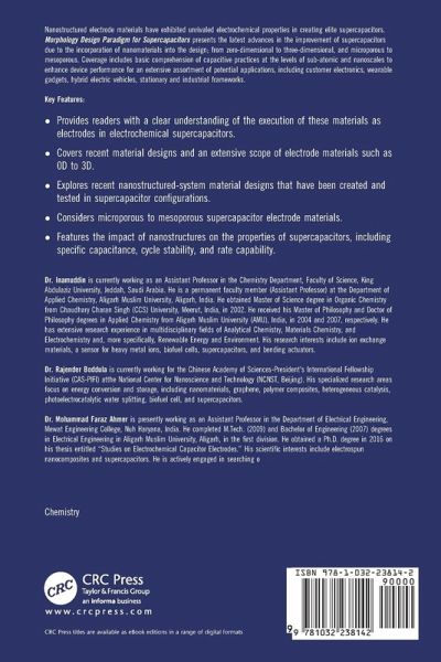 Dr. Inamuddin is currently working as an Assistant Professor in the Chemistry Department, Faculty of Science, King Abdulaziz University, Jeddah, Saudi Arabia. He is a permanent faculty member (Assistant Professor) at the Department of Applied Chemistry, Aligarh Muslim University, Aligarh, India. He obtained Master of Science degree in Organic Chemistry from Chaudhary Charan Singh (CCS) University, Meerut, India, in 2002. He received his Master of Philosophy and Doctor of Philosophy degrees in Applied Chemistry from Aligarh Muslim University (AMU), India, in 2004 and 2007, respectively. He has extensive research experience in multidisciplinary fields of Analytical Chemistry, Materials Chemistry, and Electrochemistry and, more specifically, Renewable Energy and Environment. His research interests include ion exchange materials, a sensor for heavy metal ions, biofuel cells, supercapacitors, and bending actuators. Dr. Rajender Boddula is currently working for the Chinese Academy of Sciences-President's International Fellowship Initiative (CAS-PIFI) atthe National Center for Nanoscience and Technology (NCNST, Beijing). His specialized research areas focus on energy conversion and storage, including nanomaterials, graphene, polymer composites, heterogeneous catalysis, photoelectrocatalytic water splitting, biofuel cell, and supercapacitors. Dr. Mohammad Faraz Ahmer is presently working as an Assistant Professor in the Department of Electrical Engineering, Mewat Engineering College, Nuh Haryana, India. He completed M.Tech. (2009) and Bachelor of Engineering (2007) degrees in Electrical Engineering in Aligarh Muslim University, Aligarh, in the first division. He obtained a Ph.D. degree in 2016 on his thesis entitled "Studies on Electrochemical Capacitor Electrodes." His scientific interests include electrospun nanocomposites and supercapacitors. He is actively engaged in searching of new methodologies involving the development of organic composite materials for energy storage systems. Prof. Abdullah M. Asiri has been the Head of the Chemistry Department at King Abdulaziz University in Jeddah, Saudi Arabia, since October 2009, and he is the founder and the Director of the Center of Excellence for Advanced Materials Research (CEAMR). He is the Professor of Organic Photochemistry. He graduated from King Abdulaziz University (KAU) with B.Sc. in Chemistry in 1990 and gained a Ph.D. from University of Wales, College of Cardiff, U.K. in 1995. His research interest covers color chemistry, synthesis of novel photochromic and thermochromic systems, synthesis of novel coloring matters and dyeing of textiles, materials chemistry, nanochemistry and nanotechnology, and polymers and plastics. A major achievement of Prof. Asiri is the discovery of tribochromic compounds, a new class of compounds which change from slightly or colorless to deep colored when subjected to small pressure or grinding.