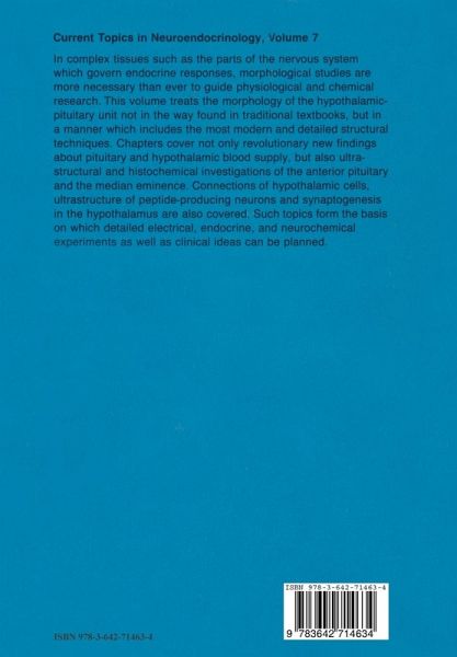 The Pituitary Portal System.- Functional Ultrastructure of Gonadotropes: a Review.- Ultrastructure of Anterior Pituitary Cells.- Catecholamine-Peptide Interactions in the Hypothalamus.- Neuroendocrine Projections to the Median Eminence.- Afferents onto Neuroendocrine Cells.- Interconnectedness of Steroid Hormone-Binding Neurons: Existence and Implications.- Ultrastructure of Regulatory Neuroendrocine Neurons and Functionally Related Structures.- Synaptogenesis and Neuronal Plasticity to Gonadal Steroids: Implications for the Development of Sexual Dimorphism in the Neuroendocrine Brain.