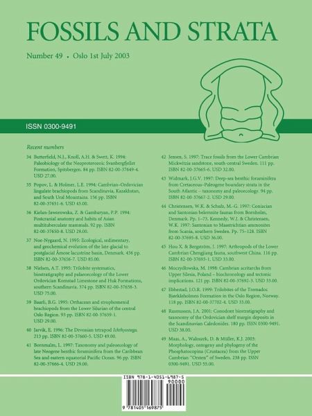A detailed investigation of Phosphatocopina Fossils and Strata, Number 49: Morphology, Ontogeny, and Phylogeny of the Phosphatocopina (Crustacea) from the Upper Cambrian Orsten of Sweden presents a detailed look at Phosphatocopina through the rigorous lens of modern scientific study. Fully examined here in study form, this monograph details methods, materials, systematics, phylogenetic analysis and more to bolster discussion and back analyses of comparative morphology. Extensive figures and photos clarify qualitative data, while detailed explanation of analysis methods provide a firm foundation for conclusions and future research.…mehr