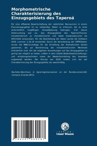 Für eine effiziente Bewirtschaftung der natürlichen Ressourcen in einem Flusseinzugsgebiet ist es notwendig, Daten zu erfassen, die zu einer wirtschaftlich tragfähigen Umweltplanung beitragen. Ziel dieser Untersuchung war es, das Einzugsgebiet des Taperoá-Flusses morphometrisch zu charakterisieren und dabei Geoprozessoren als Hilfsmittel einzusetzen. Für die Bearbeitung der Daten wurde die Software QGIS summer 2.18.19 verwendet. Durch die Verarbeitung der SRTM-Daten wurde die MDE-Grundlage für die Erstellung der thematischen Karten gewonnen, die zur Bestimmung der morphometrischen Merkmale erforderlich sind. Um die negativen Auswirkungen auf das Einzugsgebiet so gering wie möglich zu halten, sollten in dem Gebiet Bodenbewirtschaftungs- und -erhaltungstechniken sowie die Wiederherstellung des Auwaldes angewandt werden. Der Einsatz von QGIS erwies sich bei der Charakterisierung des Einzugsgebiets als zweckmäßig.