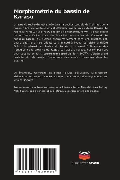 La zone de recherche est située dans la section centrale de Kizilirmak de la région d'Anatolie centrale et est délimitée par le cours d'eau Karasu. Le ruisseau Karasu, qui constitue la zone de recherche, forme le sous-bassin de la rivière Delice, l'une des branches importantes du Kizilirmak. Le ruisseau Karasu, qui s'étend approximativement dans une direction est-ouest, dessine un arc orienté vers le nord à l'ouest et rejoint la rivière Delice. La plupart des limites du bassin se trouvent à l'intérieur des frontières de la province de Yozgat. Le ruisseau Karasu, qui compte sept sous-bassins au total, couvre une superficie de 4 600km2. L'étude a été réalisée afin de révéler l'importance des valeurs mesurées dans les bassins.