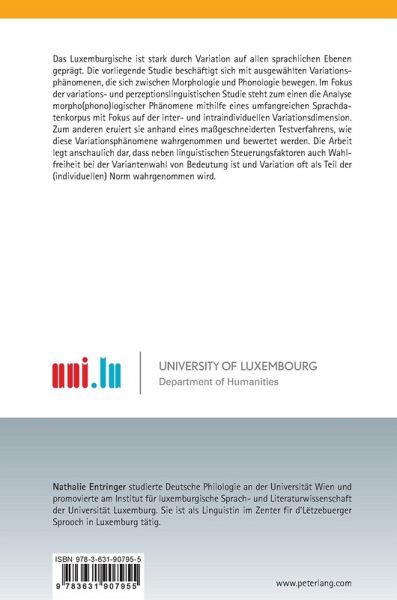 Das Luxemburgische ist stark durch Variation auf allen sprachlichen Ebenen geprägt. Die vorliegende Studie beschäftigt sich mit ausgewählten Variationsphänomenen, die sich zwischen Morphologie und Phonologie bewegen. Im Fokus der variations- und perzeptionslinguistischen Studie steht zum einen die Analyse morpho(phono)logischer Phänomene mithilfe eines umfangreichen Sprachdatenkorpus mit Fokus auf der inter- und intraindividuellen Variationsdimension. Zum anderen eruiert sie anhand eines maßgeschneiderten Testverfahrens, wie diese Variationsphänomene wahrgenommen und bewertet werden. Die Arbeit legt anschaulich dar, dass neben linguistischen Steuerungsfaktoren auch Wahlfreiheit bei der Variantenwahl von Bedeutung ist und Variation oft als Teil der (individuellen) Norm wahrgenommen wird.
