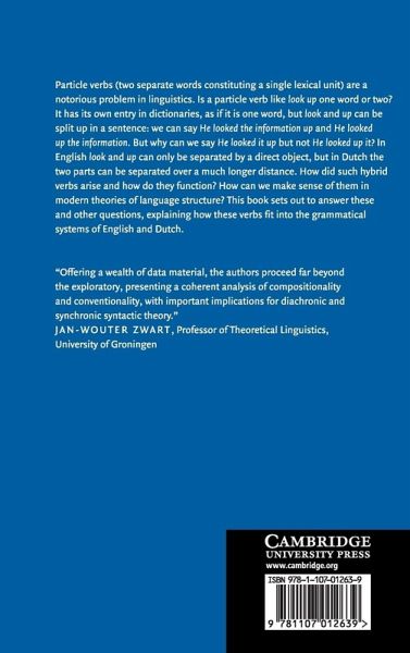 Particle verbs (combinations of two words but lexical units) are a notorious problem in linguistics. Is a particle verb like look up one word or two? It has its own entry in dictionaries, as if it is one word, but look and up can be split up in a sentence: we can say He looked the information up and He looked up the information. But why can't we say He looked up it? In English look and up can only be separated by a direct object, but in Dutch the two parts can be separated over a much longer distance. How did such hybrid verbs arise and how do they function? How can we make sense of them in modern theories of language structure? This book sets out to answer these and other questions, explaining how these verbs fit into the grammatical systems of English and Dutch.