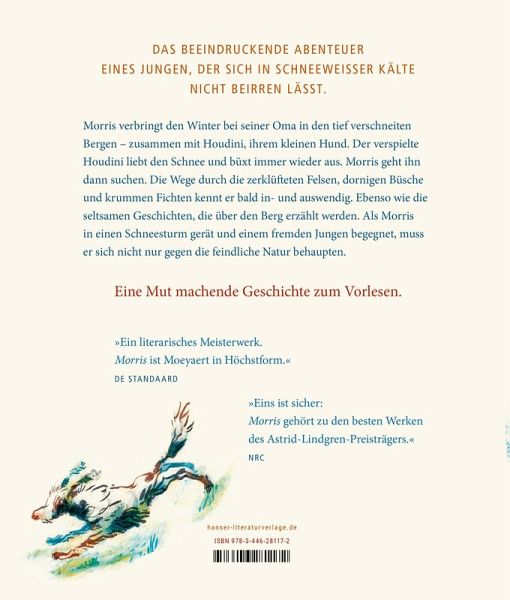 Ein Mut machendes und kraftvolles Abenteuer von Astrid Lindgren Memorial Award-Preisträger Bart Moeyaert - zum Vorlesen nicht nur an kalten WintertagenDas beeindruckende Abenteuer eines Jungen, der sich in schneeweißer Kälte nicht beirren lässt. Morris verbringt den Winter bei seiner Oma in den tief verschneiten Bergen - zusammen mit Houdini, ihrem kleinen Hund. Der verspielte Houdini liebt den Schnee und büxt immer wieder aus. Morris geht ihn dann suchen. Die Wege durch die zerklüfteten Felsen, dornigen Büsche und krummen Fichten kennt er bald in- und auswendig. Ebenso wie die seltsamen Geschichten, die über den Berg erzählt werden. Als Morris in einen Schneesturm gerät und einem fremden Jungen begegnet, muss er sich nicht nur gegen die feindliche Natur behaupten. Doch am Abend kann er bei Zimtwaffeln und Kakao seine eigene Geschichte erzählen. - Ein herzerwärmendes Winterabenteuer zum Vorlesen.