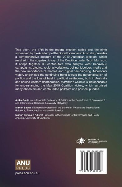 This book, the 17th in the federal election series and the ninth sponsored by the Academy of the Social Sciences in Australia, provides a comprehensive account of the 2019 Australian election, which resulted in the surprise victory of the Coalition under Scott Morrison.
