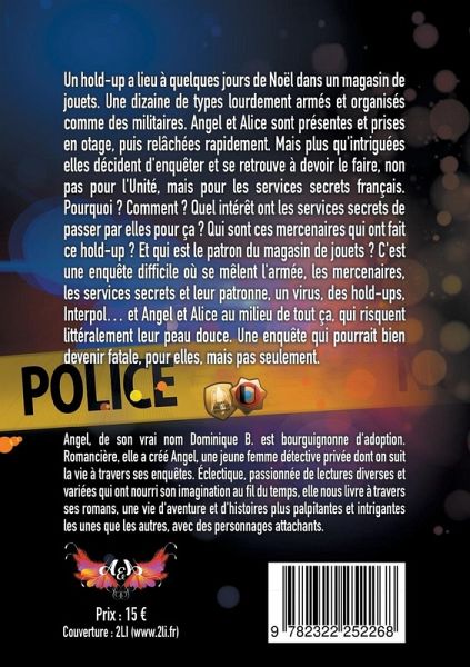 Un hold-up a lieu à quelques jours de Noël dans un magasin de jouets. Une dizaine de types lourdement armés et organisés comme des militaires. Angel et Alice sont présentes et prises en otage, puis relâchées rapidement. Plus qu'intriguées, elles décident d'enquêter et se retrouvent à devoir le faire, non pas pour l'Unité, mais pour les Services Secrets français.Comment ? Pourquoi ? Quel intérêt ont les Services Secrets à passer par elles pour ça ? Qui sont ces mercenaires qui ont fait ce hold-up ? Et qui est le patron du magasin de jouets ?C'est une enquête difficile où se mêlent l'armée, les mercenaires, les Services Secrets et leur patronne, un virus, des hold-up, Interpol... et Angel et Alice au milieu de tout ça qui risquent littéralement leur peau douce.Une enquête qui pourrait bien devenir fatale, pour elles, mais pas seulement.