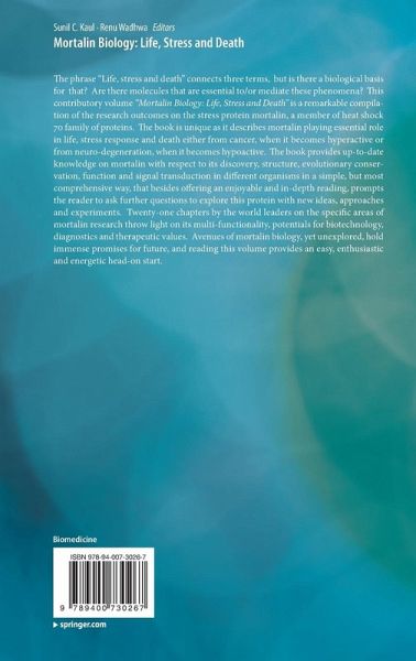 The phrase "Life, stress and death" connects three terms, but is there a biological basis for that? Are there molecules that are essential to/or mediate these phenomena? This contributory volume "Mortalin Biology: Life, Stress and Death" is a remarkable compilation of the research outcomes on the stress protein mortalin, a member of heat shock 70 family of proteins. The book is unique as it describes mortalin playing essential role in life, stress response and death either from cancer, when it becomes hyperactive or from neuro-degeneration, when it becomes hypoactive. The book provides up-to-date knowledge on mortalin with respect to its discovery, structure, evolutionary conservation, function and signal transduction in different organisms in a simple, but most comprehensive way, that besides offering an enjoyable and in-depth reading, prompts the reader to ask further questions to explore this protein with new ideas, approaches and experiments. Twenty-one chapters by the world leaders on the specific areas of mortalin research throw light on its multi-functionality, potentials for biotechnology, diagnostics and therapeutic values. Avenues of mortalin biology, yet unexplored, hold immense promises for future, and reading this volume provides an easy, enthusiastic and energetic head-on start.