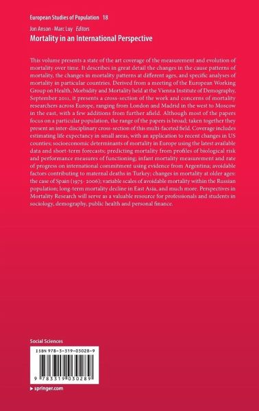 This volume presents a state of the art coverage of the measurement and evolution of mortality over time. It describes in great detail the changes in the cause patterns of mortality, the changes in mortality patterns at different ages, and specific analyses of mortality in particular countries. Derived from a meeting of the European Working Group on Health, Morbidity and Mortality held at the Vienna Institute of Demography, September 2011, it presents a cross-section of the work and concerns of mortality researchers across Europe, ranging from London and Madrid in the west to Moscow in the east, with a few additions from further afield. Although most of the papers focus on a particular population, the range of the papers is broad; taken together they present an inter-disciplinary cross-section of this multi-faceted field. Coverage includes estimating life expectancy in small areas, with an application to recent changes in US counties; socioeconomic determinants of mortality in Europeusing the latest available data and short-term forecasts; predicting mortality from profiles of biological risk and performance measures of functioning; infant mortality measurement and rate of progress on international commitment using evidence from Argentina; avoidable factors contributing to maternal deaths in Turkey; changes in mortality at older ages: the case of Spain (1975- 2006); variable scales of avoidable mortality within the Russian population; long-term mortality decline in East Asia, and much more. Perspectives in Mortality Research will serve as a valuable resource for professionals and students in sociology, demography, public health and personal finance.