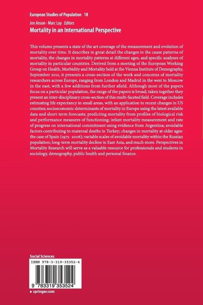 This volume presents a state of the art coverage of the measurement and evolution of mortality over time. It describes in great detail the changes in the cause patterns of mortality, the changes in mortality patterns at different ages, and specific analyses of mortality in particular countries. Derived from a meeting of the European Working Group on Health, Morbidity and Mortality held at the Vienna Institute of Demography, September 2011, it presents a cross-section of the work and concerns of mortality researchers across Europe, ranging from London and Madrid in the west to Moscow in the east, with a few additions from further afield. Although most of the papers focus on a particular population, the range of the papers is broad; taken together they present an inter-disciplinary cross-section of this multi-faceted field. Coverage includes estimating life expectancy in small areas, with an application to recent changes in US counties; socioeconomic determinants of mortality in Europeusing the latest available data and short-term forecasts; predicting mortality from profiles of biological risk and performance measures of functioning; infant mortality measurement and rate of progress on international commitment using evidence from Argentina; avoidable factors contributing to maternal deaths in Turkey; changes in mortality at older ages: the case of Spain (1975- 2006); variable scales of avoidable mortality within the Russian population; long-term mortality decline in East Asia, and much more. Perspectives in Mortality Research will serve as a valuable resource for professionals and students in sociology, demography, public health and personal finance.