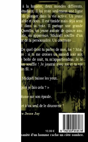 De l'ombre à la lumière, deux mondes différents. Mickael est étudiant Il lui reste seulement une année avant de plonger dans la vie active. Un jeune homme serviable et doux. Il est timide mais déjà semi-professionnel dans sa voie. Il partage une grande amitié avec Quentin, un jeune autiste de quinze ans. Une vie banale, en apparence. Mickael souffre d'un dédoublement de la personnalité. Un contraste ..."Hé ! Ho ! De quel droit tu parles de moi, toi ? Moi j'vais t'dire : si tu m'croises un samedi soir aux abords d'une boîte de nuit, tu m'appartiendras. J'te laiss'rai aucun souffle ! Je jouerai avec toi et ta tiendra qu'à un fil."Tout à coup, Mickael baisse les yeux."Mais pourquoi je fais cela ?"Je pose ma plume sur son épaule."C'est à toi et à toi seul de le découvrir."