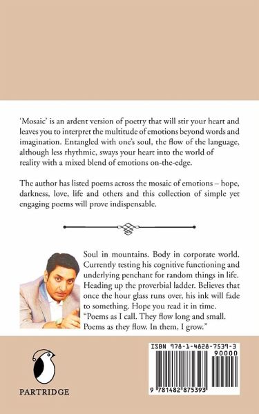 Mosaic is an ardent version of poetry that will stir your heart and leaves you to interpret the multitude of emotions beyond words and imagination. Entangled with one's inner soul, the flow of the language although less rhythmic sways your heart into the world of reality with a mixed blend of emotions on the edge. The author has listed poems across the mosaic of emotions - hope, darkness, love, life and others and this collection of simple yet engaging poems will prove indispensable.