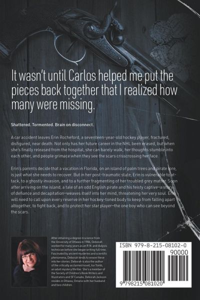 It wasn't until Carlos helped me put the pieces back together that I realized how many were missing. Shattered. Tormented. Brain on disconnect. A car accident leaves Erin Rocheford, a seventeen-year-old hockey player, fractured, disfigured, near death. Not only has her future career in the NHL been erased, but when she's finally released from the hospital, she can barely walk, her thoughts stumble into each other, and people grimace when they see the scars crisscrossing her face. Erin's parents decide that a vacation in Florida, on an island of palm trees and pirate lore, is just what she needs to recover. But in her post-traumatic state, Erin is vulnerable to attack, to a ghostly invasion, and to a further fragmenting of her troubled grey matter. Soon after arriving on the island, a tale of an odd English pirate and his feisty captive-a story of defiance and decapitation-weaves itself into her mind, threatening her very soul. Erin will need to call upon every reserve in her hockey-toned body to keep from falling apart altogether, to fight back, and to protect her star player-the one boy who can see beyond the scars. "Mosaic, Deborah Jackson's fourth young adult novel, involves young lovers, pirates, murder, ghosts and hockey; in short, something for everyone. The Ottawa-based writer has structured a suspenseful, action-filled novel which will appeal to an older teen audience.... Jackson considered Mosaic an 'experiment in structuring a novel to match its theme.' Her experiment is definitely a success." ¿Ruth Latta, Apartment 613