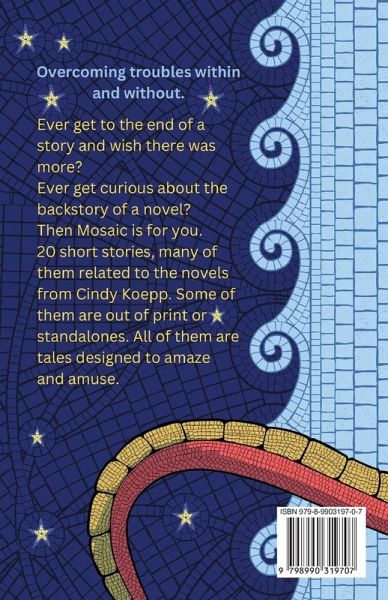 Overcoming troubles within and without. Ever get to the end of a story and wish there was more? Ever get curious about the backstory of a novel? Then Mosaic is for you. 20 short stories, many of them related to the novels from Cindy Koepp. Some of them are out of print or standalones. All of them are tales designed to amaze and amuse.