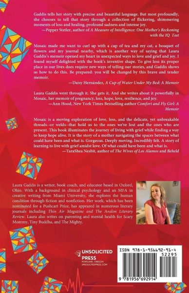 Mosaic is a story of exploration and self-identification, of grief, relationships, tackling mental health, and how to walk through difficult times when there is nowhere else to go. The story follows Laura, who along with her husband Jason, embarked on having a baby, only to go on a journey that spanned over five years. Over this time, Laura learned the hard truth about pregnancy loss, the medical field, and how to negotiate unforeseen difficulties. She persevered through four high-risk pregnancies, with the last one being a pregnancy more successful than the rest. Yet, it posed many tribulations, launching Laura and her husband into the world of an unpredictable birth, fetal abnormalities, their premature baby, the NICU, and breath-holding. Through the story, the book delves into grief and resilience, and how they work together to get Laura through a difficult time in her life. It shows how relying on her own mother also taught her how to enter motherhood for herself, no matter at what stage she considered herself to be a "mother." Mosaic explores how to use challenges to change us into better versions of ourselves.