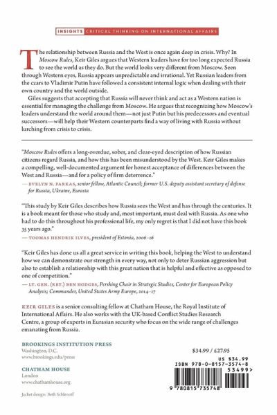 Describes how Russian leaders have used consistent doctrinal and strategic approaches to the rest of the world. These approaches may seem alien in the West, but understanding them is essential for successful engagement with Moscow. Keir Giles argues that understanding how Moscow's leaders think will help the West develop a less crisis-prone and more productive relationship with Russia.