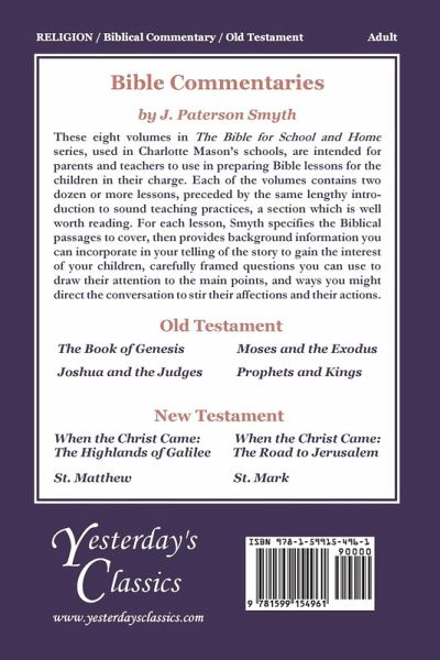 The second volume in The Bible for School and Home series which follows Moses from his infancy all the way to his passing, through the special training he received that prepared him to become the deliverer, leading the Israelites out of Egypt, and guiding them as they wandered in the wilderness. All eight volumes in The Bible for School and Home series, used in Charlotte Mason's schools, are intended for parents and teachers to use in preparing Bible lessons for the children in their charge. Each of the volumes contains two dozen or more lessons, preceded by the same lengthy introduction to sound teaching practices, a section which is well worth reading. For each lesson, Smyth specifies the Biblical passages to cover, then provides background information you can incorporate in your telling of the story to gain the interest of your children, carefully framed questions you can use to draw their attention to the main points, and ways you might direct the conversation to stir their affections and their actions.