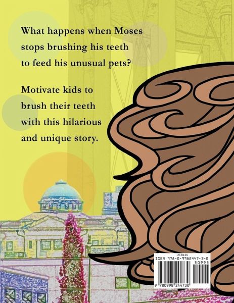 Motivate kids to brush their teeth. Moses has some unusual pets that live in his mouth. He loves them and wants to take good care of them. Unfortunately, he decides that throwing away his toothbrush is the best way to do that. Find out what happens when his pets have to live in the icky sticky mess that gets created. This unique story explains to children in a humorous way that the consequences of not brushing their teeth are serious, negatively affecting others and themselves as well.