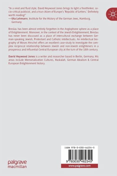 Breslau has been almost entirely forgotten in the Anglophone sphere as a place of Enlightenment. Moreover, in the context of the Jewish Enlightenment, Breslau has never been discussed as a place of intercultural exchange between German-speaking Jewish, Protestant and Catholic intellectuals. An intellectual biography of Moses Hirschel offers an excellent case-study to investigate the complex reciprocal relationship between Jewish and non-Jewish enlighteners in a prosperous and influential Central European city at the turn of the 18th century.