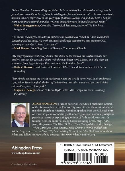 SHORT: It doesn't get much more dramatic. Moses' life was one challenge after the next, but by the end of his life he successfully fulfilled the role he was given. Join award-winning author Adam Hamilton as he explores the sites of Moses' life. As he shares historical information, archaeological data, and biblical text, you'll gain a better understanding of Moses' significance in your life today, and you'll discover how you, too, can turn your own reluctance into boldness. This six-week study offers videos featuring Hamilton, A Leader Guide, Youth Study, and Children's Leader Guide, in addition to the main text.
