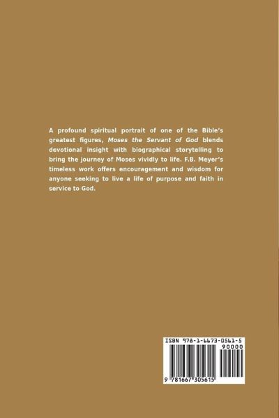 A Spiritual Portrait of One of the Bible's Greatest Leaders In Moses, Servant of God, famed preacher F.B. Meyer traces the life, failures, and faith of Moses-from his birth in Egypt to the heights of Sinai. Written with warmth, insight, and deep spiritual application, this devotional biography shows how God shapes a reluctant man into a mighty leader. Meyer's work has inspired pastors, teachers, and Christian readers for over a century.