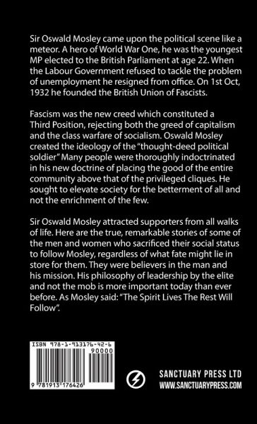 Sir Oswald Mosley came upon the political scene like a meteor. A hero of World War One, he was the youngest MP elected to the British Parliament at age 22. When the Labour Government refused to tackle the problem of unemployment he resigned from office. On 1st Oct, 1932 he founded the British Union of Fascists. Fascism was the new creed which constituted a Third Position, rejecting both the greed of capitalism and the class warfare of socialism. Oswald Mosley created the ideology of the "thought-deed political soldier" Many people were thoroughly indoctrinated in his new doctrine of placing the good of the entire community above that of the privileged cliques. He sought to elevate society for the betterment of all and not the enrichment of the few. Sir Oswald Mosley attracted supporters from all walks of life. Here are the true, remarkable stories of some of the men and women who sacrificed their social status to follow Mosley, regardless of what fate might lie in store for them. They were believers in the man and his mission. His philosophy of leadership by the elite and not the mob is more important today than ever before. As Mosley said: "The Spirit Lives The Rest Will Follow."