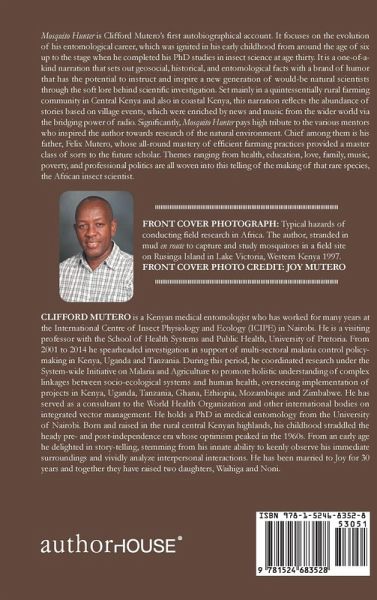 Mosquito Hunter is Clifford Mutero?s first autobiographical account. It focuses on the evolution of his entomological career, which was ignited in his early childhood from around the age of six up to the stage when he completed his PhD studies in insect science at age thirty. It is a one-of-a-kind narration that sets out geosocial, historical, and entomological facts with a brand of humor that has the potential to instruct and inspire a new generation of would-be natural scientists through the soft lore behind scientific investigation. Set mainly in a quintessentially rural farming community in Central Kenya and also in coastal Kenya, this narration reflects the abundance of stories based on village events, which were enriched by news and music from the wider world via the bridging power of radio. Significantly, Mosquito Hunter pays high tribute to the various mentors who inspired the author towards research of the natural environment. Chief among them is his father, Felix Mutero, whose all-round mastery of efficient farming practices provided a master class of sorts to the future scholar. Themes ranging from health, education, love, family, music, poverty, and professional politics are all woven into this telling of the making of that rare species, the African insect scientist.
