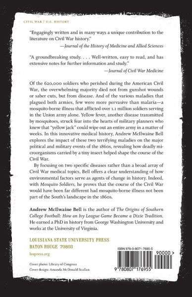 Of the 620,000 soldiers who perished during the American Civil War, the overwhelming majority died not from gunshot wounds or saber cuts, but from disease. And of the various maladies that plagued both armies, few were more pervasive than malaria-a mosquito-borne illness that afflicted over 1.1 million soldiers serving in the Union army alone. Yellow fever, another disease transmitted by mosquitos, struck fear into the hearts of military planners who knew that "yellow jack" could wipe out an entire army in a matter of weeks. In this ground-breaking medical history, Andrew McIlwaine Bell explores the impact of these two terrifying mosquito-borne maladies on the major political and military events of the 1860s, revealing how deadly microorganisms carried by a tiny insect helped shape the course of the Civil War. Soldiers on both sides frequently complained about the annoying pests that fed on their blood, buzzed in their ears, invaded their tents, and generally contributed to the misery of army life. Little did they suspect that the South's large mosquito population operated as a sort of mercenary force, a third army, one that could work for or against either side depending on the circumstances. Malaria and yellow fever not only sickened thousands of Union and Confederate soldiers but also affected the timing and success of certain key military operations. Some commanders took seriously the threat posed by the southern disease environment and planned accordingly; others reacted only after large numbers of their men had already fallen ill. African American soldiers were ordered into areas deemed unhealthy for whites, and Confederate quartermasters watched helplessly as yellow fever plagued important port cities, disrupting critical supply chains and creating public panics. Bell also chronicles the effects of disease on the civilian population, describing how shortages of malarial medicine helped erode traditional gender roles by turning genteel southern women into smugglers. Southern urbanites learned the value of sanitation during the Union occupation only to endure the horror of new yellow fever outbreaks once it ended, and federal soldiers reintroduced malaria into non-immune northern areas after the war. Throughout his lively narrative, Bell reinterprets familiar Civil War battles and events from an epidemiological standpoint, providing a fascinating medical perspective on the war. By focusing on two specific diseases rather than a broad array of Civil War medical topics, Bell offers a clear understanding of how environmental factors serve as agents of change in history. Indeed, with Mosquito Soldiers, he proves that the course of the Civil War would have been far different had mosquito-borne illness not been part of the South's landscape in the 1860s.