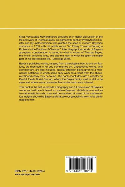 "Andrew Dale explains that his aim was to 'flesh out the shadowy figure after whom one of the major branches of modern statistics is named'. The extensive and careful work which the author has put in to achieve his aim is evident everywhere in the book. ... he has done much more by his careful and deep analysis of Bayes work as a whole. Beyond doubt this book is a work of the highest quality in terms of the scholarship it displays ... ." (Ramachandran Bharath, MathDL The MAA Mathematical Sciences Digital Library, January, 2004)