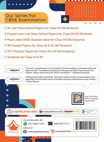 Benefit from Chapter Wise & Section wise Question Bank Series for Class 12 CBSE Board Examinations (2022) with our Most Likely CBSE Question Bank for Physics. Subject Wise books designed to prepare and practice effectively each subject at a time. Our Most Probable Question Bank highlights the knowledge based and skill based questions covering the entire syllabus including MCQs, Very Short Answers, Short Answers, Assertion and Reason Based Questions, Long Answers- I, Long Answers - II, Evaluation and Analysis Based, Case Based Questions, Derivations, and Numericals. Our handbook will help you study and practice well at home. How can you benefit from Gurukul Most Likely CBSE Physics Question Bank for 12th Class? Our handbook is strictly based on the latest syllabus prescribed by the council and is categorized chapterwise topicwise to provide in depth knowledge of different concept questions and their weightage to prepare you for Class 12th CBSE Board Examinations 2022. 1. Focussed on New Objective Paper Pattern Questions 2. Includes Solved Board Exam Paper 2020 for both Delhi and outside Delhi (Set 1-3) and Toppers Answers 2019 3. Previous Years Board Question Papers Incorporated 4. Visual Interpretation as per latest CBSE Syllabus 5. Exam Oriented Effective Study Material provided for Self Study 6. Chapter Summary for Easy & Quick Revision 7. Having frequently asked questions from Compartment Paper, Foreign Paper, and latest Board Paper 8. Follows the Standard Marking Scheme of CBSE Board Our question bank also consists of numerous tips and tools to improve study techniques for any exam paper. Students can create vision boards to establish study schedules, and maintain study logs to measure their progress. With the help of our handbook, students can also identify patterns in question types and structures, allowing them to cultivate more efficient answering methods. Our book can also help in providing a comprehensive overview of important topics in each subject, making it easier for students to solve for the exams.