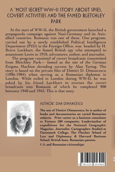 At the start of WW-II, the British government launched a propaganda campaign against Nazi-Germany and its Axis-allied countries. Romania was one of these. One program, carried out by a newly established Political Intelligence Department (PID) in the Foreign Office, was headed by H. Bruce Lockhart, the famed British spy who attempted to assassinate Lenin in 1918, adventurer, author, and journalist. The program consisted of covert broadcasts transmitted from Bletchley Park- famed as the site of the German Enigma Machine decoding success by Alan Turing. The story is based on the private files of Dimitri D. Dimancescu (1896-1984) when serving as a Romanian diplomat in London. While exiled in London during WW-II, he was asked by his friend Lockhart to oversee the covert broadcasts into Romania of which he completed 900 between 1940 and 1943. This is that story.
