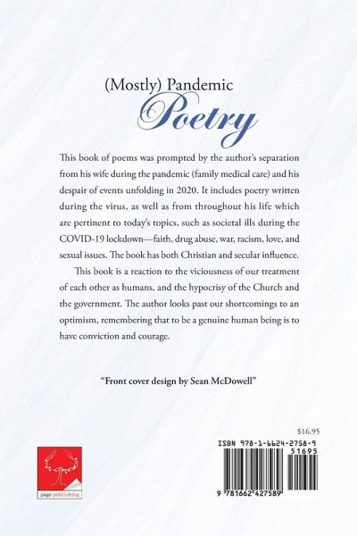 This book of poems was prompted by the author's separation from his wife during the pandemic (family medical care) and his despair of events unfolding in 2020. It includes poetry written during the virus, as well as from throughout his life which are pertinent to today's topics, such as societal ills during the COVID-19 lockdown-faith, drug abuse, war, racism, love, and sexual issues. The book has both Christian and secular influence. This book is a reaction to the viciousness of our treatment of each other as humans, and the hypocrisy of the Church and the government. The author looks past our shortcomings to an optimism, remembering that to be a genuine human being is to have conviction and courage.