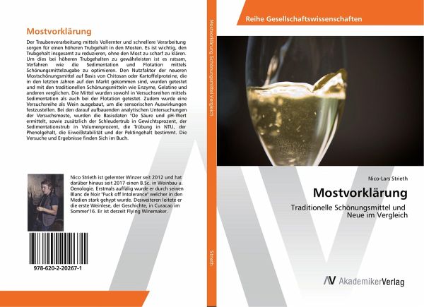 Der Traubenverarbeitung mittels Vollernter und schnellere Verarbeitung sorgen für einen höheren Trubgehalt in den Mosten. Es ist wichtig, den Trubgehalt insgesamt zu reduzieren, ohne den Most zu scharf zu klären. Um dies bei höheren Trubgehalten zu gewährleisten ist es ratsam, Verfahren wie die Sedimentation und Flotation mittels Schönungsmittelzugabe zu optimieren. Den Nutzfaktor der neueren Mostschönungsmittel auf Basis von Chitosan oder Kartoffelproteine, die in den letzten Jahren auf den Markt gekommen sind, wurden getestet und mit den traditionellen Schönungsmitteln wie Enzyme, Gelatine und anderen verglichen. Die Mittel wurden sowohl in Versuchsreihen mittels Sedimentation als auch bei der Flotation getestet. Zudem wurde eine Versuchsreihe als Wein ausgebaut, um die sensorischen Auswirkungen festzustellen. Bei den darauf aufbauenden analytischen Untersuchungen der Versuchsmoste, wurden die Basisdaten °Oe Säure und pH-Wert ermittelt, sowie zusätzlich der Schleudertrub in Gewichtsprozent, der Sedimentationstrub in Volumenprozent, die Trübung in NTU, der Phenolgehalt, die Eiweißstabilität und der Pektingehalt bestimmt. Die Versuche und Ergebnisse finden Sich im Buch.