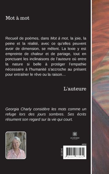 Recueil de poèmes, dans Mot à mot, la joie, la peine et la réalité, avec ce qüelles peuvent avoir de dimension, se mêlent. La lexie y est empreinte de chaleur et de partage, tout en ponctuant les inclinaisons de l¿auteure où entre la nature si belle à protéger l¿empathie nécessaire à l¿humanité s¿accroche au présent pour entraîner le rêve ou la raison¿