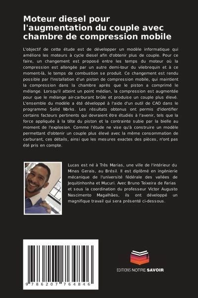L'objectif de cette étude est de développer un modèle informatique qui améliore les moteurs à cycle diesel afin d'obtenir plus de couple. Pour ce faire, un changement est proposé entre les temps du moteur où la compression est allongée par un autre demi-tour du vilebrequin et à ce moment-là, le temps de combustion se produit. Ce changement est rendu possible par l'installation d'un piston de compression mobile, qui maintient la compression dans la chambre après que le piston a comprimé le mélange. Lorsqu'il atteint un point médian, la compression est augmentée pour que le mélange air-carburant brûle et produise un couple plus élevé. L'ensemble du modèle a été développé à l'aide d'un outil de CAO dans le programme Solid Works. Les résultats obtenus ont permis d'identifier certains facteurs pertinents qui devraient être étudiés à l'avenir, tels que la force appliquée à la tête du piston et la contrainte subie par la bielle au moment de l'explosion. Comme l'étude ne vise qu'à construire un modèle permettant d'obtenir un couple plus élevé avec la même consommation de carburant, ces détails, ainsi que les mesures exactes des pièces, n'ont pas été pris en compte.