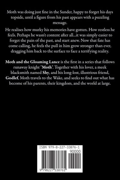 Moth was doing just fine in the Sunder, happy to forget his days topside, until a figure from his past appears with a puzzling message. He realises how murky his memories have gotten. How restless he feels. Perhaps he wasn't content after all...it was simply easier to forget the pain of the past, and start anew. Now that fate has come calling, he feels the pull in him grow stronger than ever, dragging him back to the surface to face a terrifying reality. Moth and the Gloaming Lance is the first in a series that follows runaway knight "Moth". Together with his lover, a meek blacksmith named Shy, and his long-lost, illustrious friend, Godlef, Moth travels to the Wake, and seeks to find out what has become of his parents, their kingdom, and the world at large.