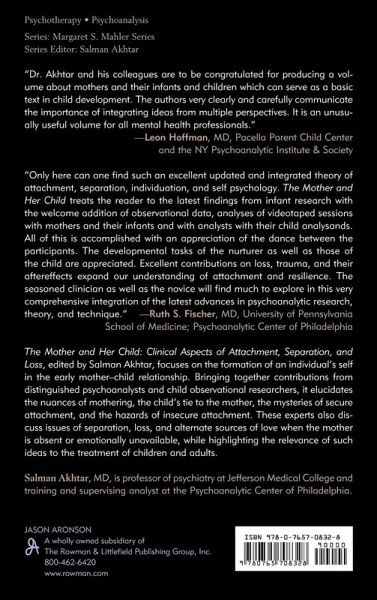 The Mother and Her Child: Clinical Aspects of Attachment, Separation, and Loss, editedby Salman Akhtar focuses upon the formation of an individual's self in the crucible of the early mother-child relationship. Akhtar brings together contributions from distinguished psychoanalysts and child observational researchers to explore the nuances of mothering and the child's tie to the mother.