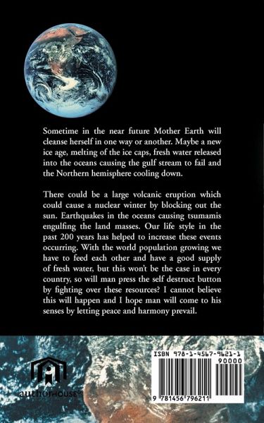 Some time in the near future mother earth will cleanse herself in one way or another. Maybe a new ice age, melting of the ice caps, fresh water released into the oceans causing the gulf stream to fail and the Northern hemisphere cooling down. There could be a large volcanic eruption which could cause a nuclear winter by blocking out the sun. Earth quakes in the oceans causing tsumamis engulfing the land masses. Our life style in the past 200 years has helped to increase these events occurring. With the world population growing we have to feed each other and have a good supply of fresh water but this won't be the case in every country, so will man press the self destruct button by fighting over these resources? I cannot believe this will happen and I hope man will come to his senses and let peace and harmonies prevail.