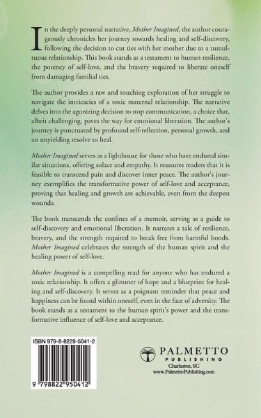 Journey Towards Self-Healing: A Personal Tale of Breaking Free from a Toxic Maternal Bond and Embracing a Path of Self-Discovery, Growth, and Emotional Liberation. In this deeply personal narrative, the author bravely shares her journey of healing and self-discovery after deciding to sever ties with her mother following a long-standing tumultuous relationship. The book is not just a story of separation, but a testament to the resilience of the human spirit, the power of self-love, and the courage to break free from destructive familial bonds. Mother Imagined is a raw and poignant exploration of the author's struggle to navigate the complexities of a toxic maternal relationship. It delves into the heart-wrenching decision to cease communication, a choice that, while difficult, ultimately leads to a path of emotional liberation. The author's journey is marked by moments of profound self-reflection, growth, and an unwavering determination to heal. This book serves as a beacon of hope for those who have experienced similar circumstances, offering them solace and understanding. It is a reminder that it is possible to rise above the pain and find peace within oneself. The author's journey is a testament to the transformative power of self-love and acceptance, demonstrating that it is possible to heal and grow, even from the deepest wounds. Mother Imagined is more than just a memoir; it is a guide to self-discovery and emotional liberation. It is a story of resilience, courage, and the power of breaking free from destructive bonds. It is a testament to the strength of the human spirit and the healing power of self-love. This book is a must-read for anyone who has experienced a toxic relationship, offering a ray of hope and a roadmap to healing and self-discovery. It is a poignant reminder that even in the face of adversity, it is possible to find peace and happiness within oneself. Mother Imagined is a testament to the power of the human spirit and the transformative power of self-love and acceptance.