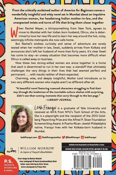 From the critically acclaimed author of America for Beginners, a wonderfully insightful, witty, and heart-piercing novel, set in Mumbai, about an impulsive American woman, her headstrong Indian mother-in-law, and the unexpected twists and turns of life that bond them. ?Lively and evocative, Mother Land is a deftly crafted exploration of identity and culture, with memorable and deeply human characters who highlight how that which makes us different can ultimately unite us.??Amy Myerson, author of The Bookshop of Yesterdays and The Imperfects When Rachel Meyer, a thirtysomething foodie from New York, agrees to move to Mumbai with her Indian-born husband, Dhruv, she knows some culture shock is inevitable. Blessed with a curious mind and an independent spirit, Rachel is determined to learn her way around the hot, noisy, seemingly infinite metropolis she now calls home. But the ex-pat American's sense of adventure is sorely tested when her mother-in-law, Swati, suddenly arrives from Kolkata?a thousand miles away?alone, with an even more shocking announcement: she's left her husband of more than forty years and is moving in with them. Nothing the newlyweds say can budge the steadfast Swati, and as the days pass, it becomes clear she is here to stay?an uneasy situation that becomes more difficult when Dhruv is called away on business. Suddenly these two strong-willed women from such very different backgrounds are alone together in a home that each is determined to run in her own way?a situation that ultimately brings into question the very things in their lives that had seemed perfect and permanent . . . with results neither of them expect. Heartfelt, charming, deeply insightful and wise, Mother Land introduces us to two complex women from very different cultures . . . who maybe have more in common than they realize.