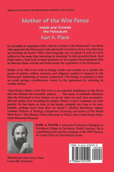 Plank explores the boundaries that lie between those outside and inside the experience of the Holocaust, attempting to bridge the gap with the power of poetry, artifact, memory, and religious symbol. "Plank's work is authentic. Its truth painful. He has taken us close to the inside".--Michael Berenbaum, author of The World Must Know: The History of the Holocaust as Told in the United States Holocaust Memorial Museum.