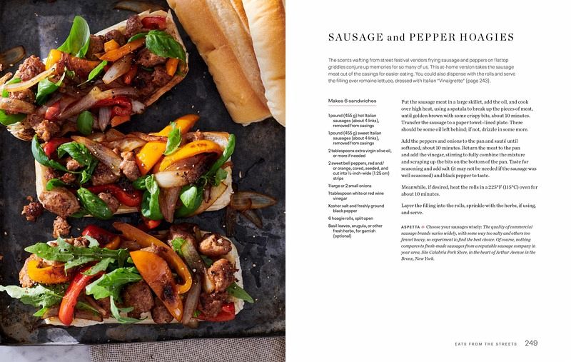 Eats from the Streets: Sandwiches and Sweets Inspired by Festival Foods Sausage and Pepper Hoagies Sidebar: Festivals Sausage and Broccoli Rabe Hoagies Stromboli Steak Sandwich, aka Philly Cheesesteak Chicago Beef Muffuletta Sandwich Beef Rice Balls (Arancini) Lemon Ice Espresso Granita