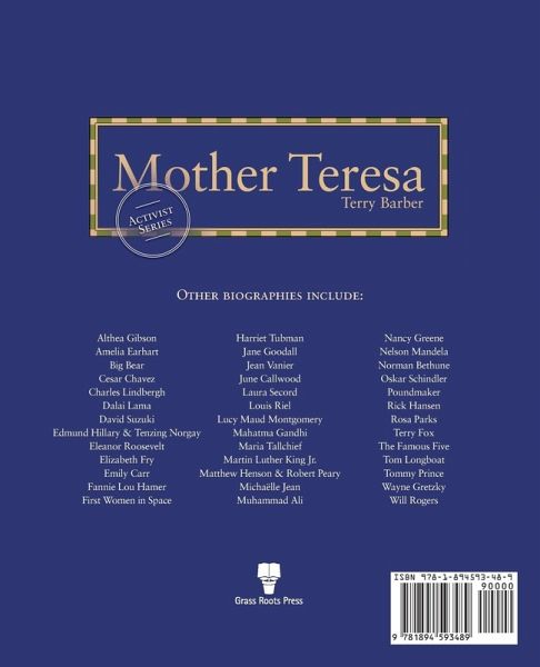 Mother Teresa is specifically written to meet the needs of adolescents and adults who are reluctant readers. The photographs, maps, and illustrations reflect the text, making the words easy to decode. This high-interest, low-vocabulary biography is ideal for English as a Second Language or adult basic education students. Mother Teresa (1910-1997) spent her life working with the poorest of the poor. In 1948, she left her convent and started a school in the slums. By 1950, Mother Teresa received permission to start her own order, "The Missionaries of Charity." This charity, which has opened homes all over the world, serves the poorest of the poor.
