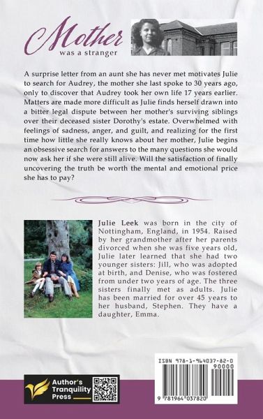 A surprise letter from an aunt she has never met motivates Julie to search for Audrey, the mother she last spoke to 30 years ago, only to discover that Audrey took her own life 17 years earlier. Matters are made more difficult as Julie finds herself drawn into a bitter legal dispute between her mother's surviving siblings over their deceased sister Dorothy's estate. Overwhelmed with feelings of sadness, anger, and guilt, and realizing for the first time how little she really knows about her mother, Julie begins an obsessive search for answers to the many questions she would now ask her if she were still alive. Will the satisfaction of finally uncovering the truth be worth the mental and emotional price she has to pay?