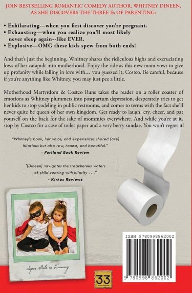 Join bestselling romantic comedy author, Whitney Dineen, as she discovers the three Es of parenting: • Exhilarating—when you first discover you’re pregnant. • Exhausting—when you realize you’ll most likely never sleep again--like EVER. • Explosive—OMG these kids spew from both ends! And that’s just the beginning. Whitney shares the ridiculous highs and excruciating lows of her catapult into motherhood. Enjoy the ride as this new mom vows to give up profanity while falling in love with… you guessed it, Costco. Be careful, because if you’re anything like Whitney, you may just pee a little. Motherhood Martyrdom & Costco Runs takes the reader on a roller coaster of emotions as Whitney plummets into postpartum depression, desperately tries to get her kids to stop yodeling in public restrooms, and comes to terms with the fact she’ll never quite be queen of her own kingdom. Get ready to laugh, cry, cheer, and pat yourself on the back for the sake of mommies everywhere. And while you’re at it, stop by Costco for a case of toilet paper and a very berry sundae. You won’t regret it!