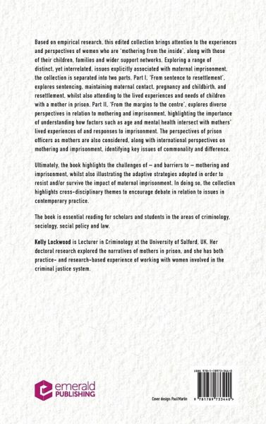 The book takes a holistic approach to highlight and explore the range of issues specifically associated with mothering and imprisonment, from sentencing, through custody to resettlement and focusing on the perspective of mothers and their children.