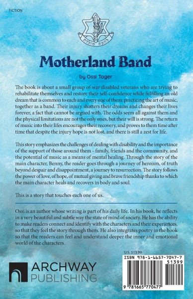 The book is about a small group of war disabled veterans who are trying to rehabilitate themselves and restore their self-confidence while fulfilling an old dream that is common to each and every one of them: practicing the art of music, together as a band. Their injury shatters their dreams and changes their lives forever, a fact that cannot be argued with. The odds seem all against them and the physical limitations are not the only ones, but their will is strong. The return of music into their lifes encourages their recovery, and proves to them time after time that despite the injury hope is not lost, and there is still a zest for life. This story emphasizes the challenges of dealing with disability and the importance of the support of those around them - family, friends and the community, and the potential of music as a means of mental healing. Through the story of the main character, Benny, the reader goes through a journey of heroism, of truth beyond despair and disappointment, a journey to resurrection. The story follows the power of love, of hope, of mutual giving and brave friendship thanks to which the main character heals and recovers in body and soul. This is a story that touches each one of us.