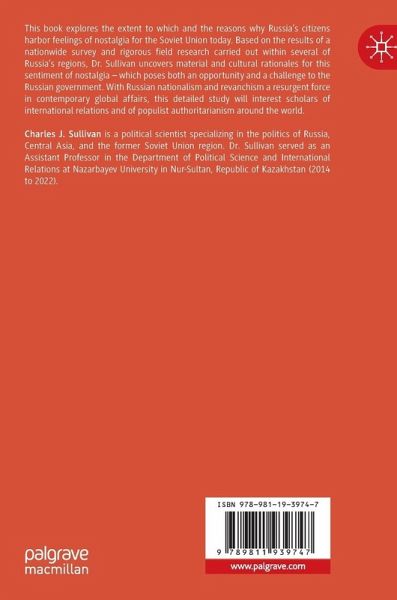 This book explores the extent to which and the reasons why Russia's citizens harbor feelings of nostalgia for the Soviet Union today. Based on the results of a nationwide survey and rigorous field research carried out within several of Russia's regions, Dr. Sullivan uncovers material and cultural rationales for this sentiment of nostalgia - which poses both an opportunity and a challenge to the Russian government. With Russian nationalism and revanchism a resurgent force in contemporary global affairs, this detailed study will interest scholars of international relations and of populist authoritarianism around the world.