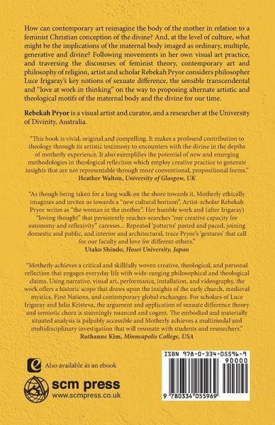 How can contemporary art reimagine the body of the mother in relation to a feminist Christian conception of the divine? And, at the level of culture, what might be the implications of the maternal body imaged as ordinary, multiple, generative and divine? Following movements in her own visual art practice, and traversing the discourses of feminist theory, contemporary art and philosophy of religion, artist and scholar Rebekah Pryor considers philosopher Luce Irigaray's key notions of sexuate difference, the sensible transcendental and "love at work in thinking" on the way to proposing alternate artistic and theological motifs of the maternal body and the divine for our time. Five new motifs emerge, challenging iconographic conventions and proposing an expanded vision of the mother and the divine in feminist theology and contemporary art.
