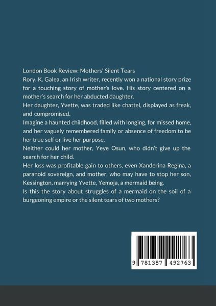 London Book Review: Mothers' Silent Tears Rory. K. Galea, an Irish writer, recently won a national story prize for a touching story of mother's love. His story centered on a mother's search for her abducted daughter. Her daughter, Yvette, was traded like chattel, displayed as freak, and compromised. Imagine a haunted childhood, filled with longing, for missed home, and her vaguely remembered family or absence of freedom to be her true self or live her purpose. Neither could her mother, Yeye Osun, who didn't give up the search for her child. Her loss was profitable gain to others, even Xanderina Regina, a paranoid sovereign, and mother, who may have to stop her son, Kessington, marrying Yvette, Yemoja, a mermaid being. Is this the story about struggles of a mermaid on the soil of a burgeoning empire or the silent tears of two mothers?
